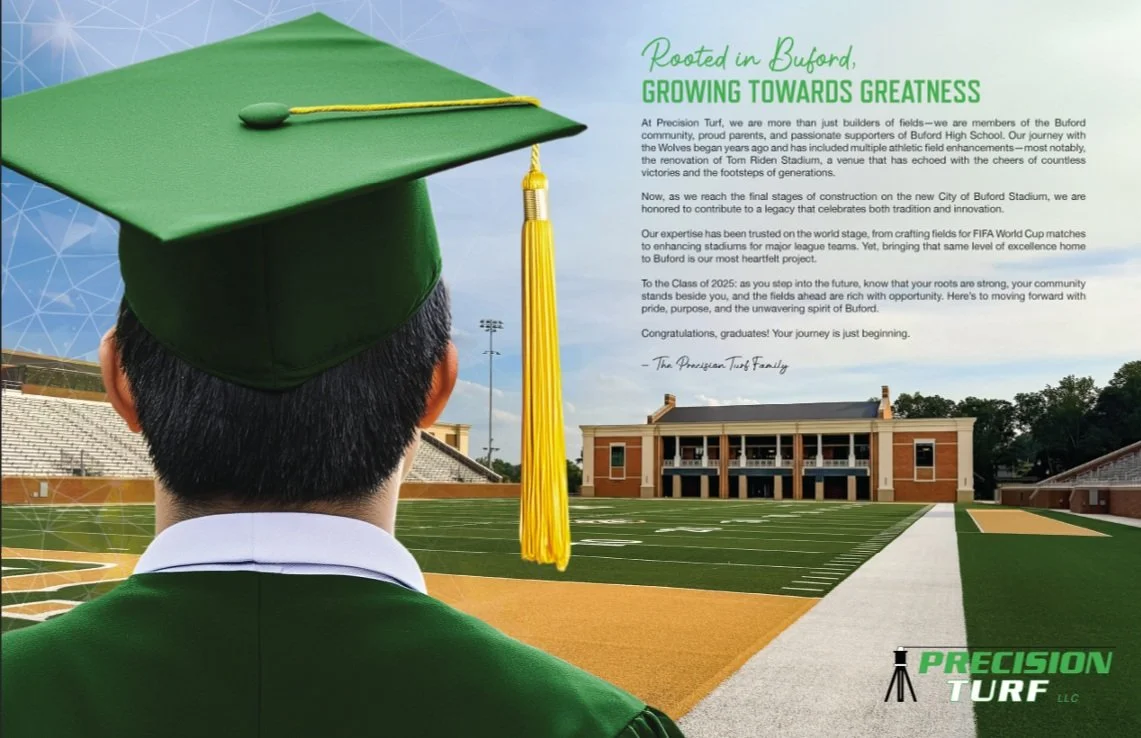 With gratitude, the Buford High School Class of 2025 thanks Precision Turf for their support in making last year’s Graduation Magazine possible.